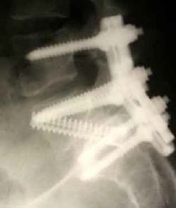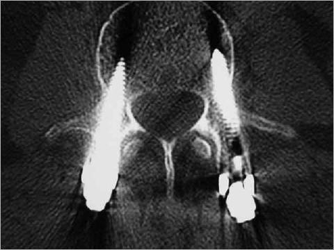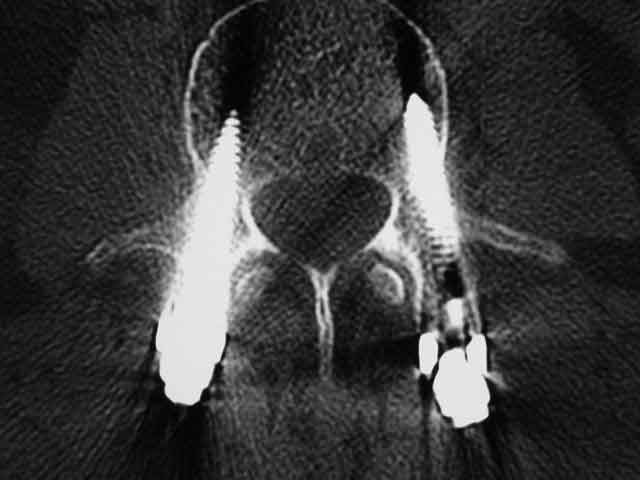 Knochenschrauben im Wirbel: Mit Computernavigation wird die Stabilisierung durchgeführt und gibt dem Patienten maximale Sicherheit.