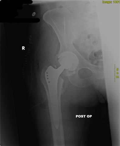 | postoperatives Zustand mit Zementfrei implantierter Hüfttotal-Endoprothese |