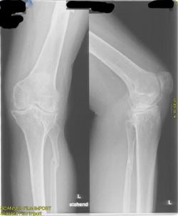 schwere Kniegelenksarthrose, Gelenksspalt innen komplett aufgebraucht