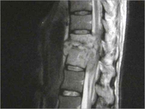 Mit Tuberkulose infizierter Wirbel: Bei Patienten mit schwachem Immunsystem kann die Wirbelsäule von Bakterien befallen werden.